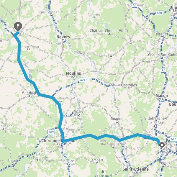 Continuer et rejoindre A89 E70. Continuer sur 83 kilomètres