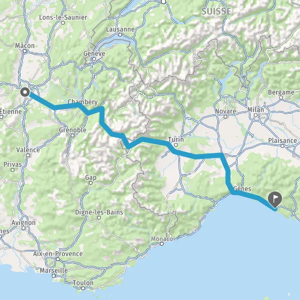 Prendre à droite et rejoindre A43 E70. Continuer sur 65 kilomètres