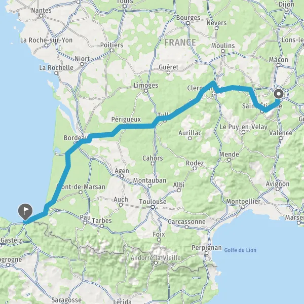 Prendre à droite et rejoindre A63 E5 E70. Continuer sur 169 kilomètres