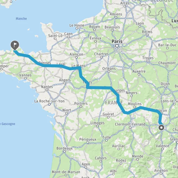Prendre à droite et rejoindre A85 E604. Continuer sur 105 kilomètres
