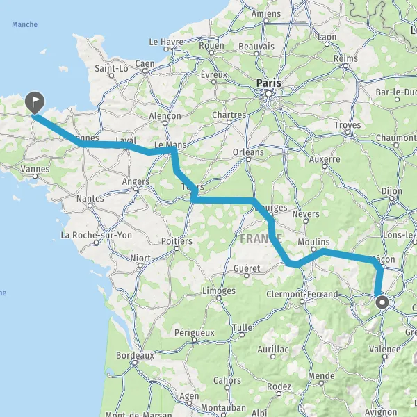 Prendre à droite et rejoindre A85 E604. Continuer sur 105 kilomètres