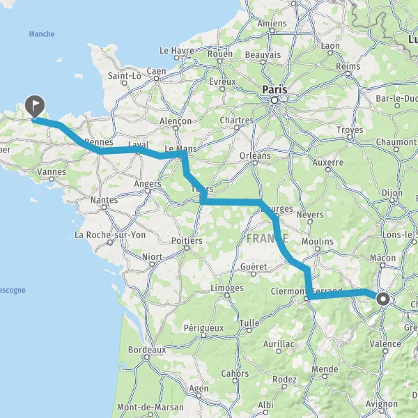 Prendre à droite et rejoindre A85 E604. Continuer sur 105 kilomètres