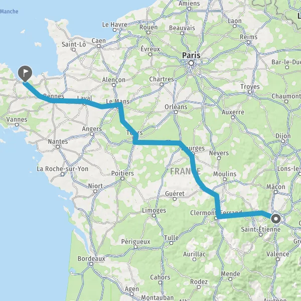 Prendre à droite et rejoindre A85 E604. Continuer sur 105 kilomètres