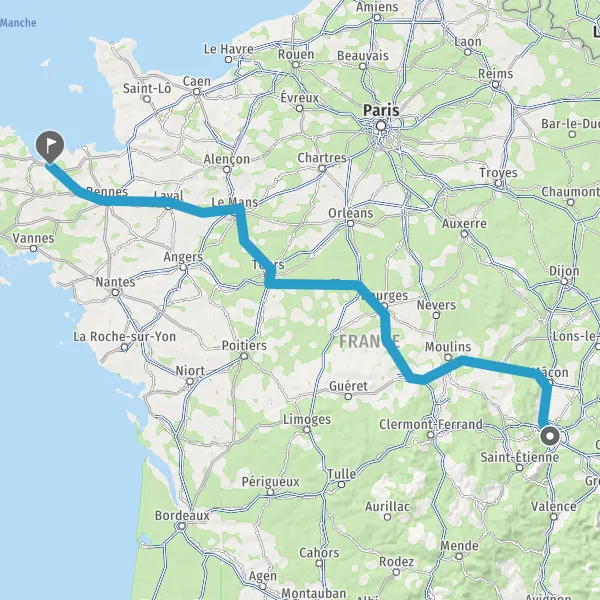Prendre à droite et rejoindre A85 E604. Continuer sur 105 kilomètres