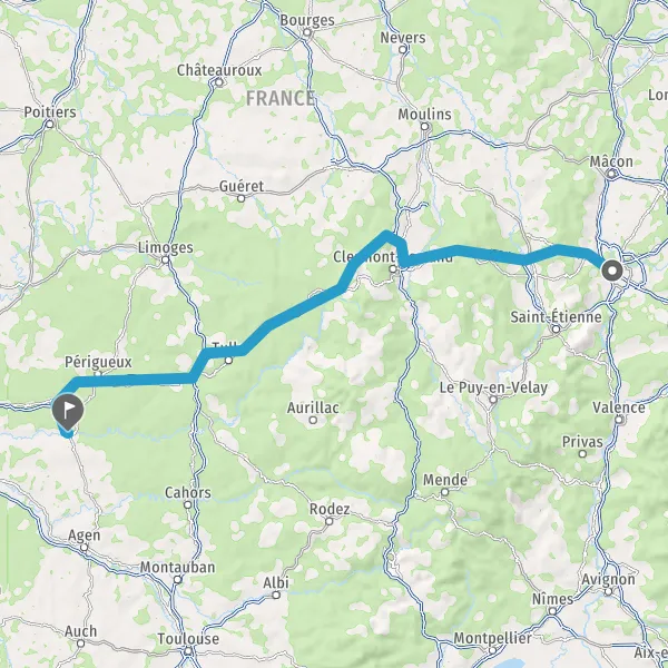 Prendre à droite et rejoindre A89 E70. Continuer sur 161 kilomètres
