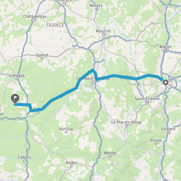Prendre à droite et rejoindre A89 E70. Continuer sur 161 kilomètres
