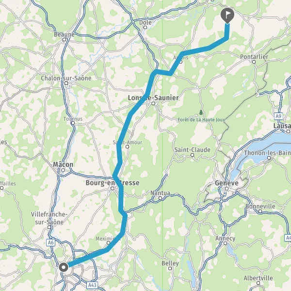 Prendre à droite et rejoindre A42. Continuer sur 4,4 kilomètres