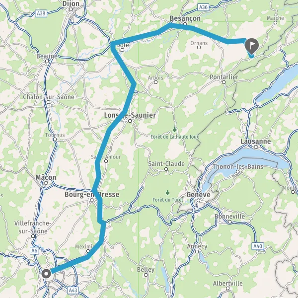 Prendre à droite et rejoindre A36 E60. Continuer sur 42 kilomètres