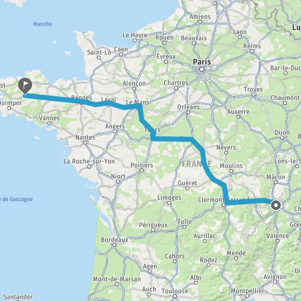 Prendre à droite et rejoindre A85 E604. Continuer sur 105 kilomètres