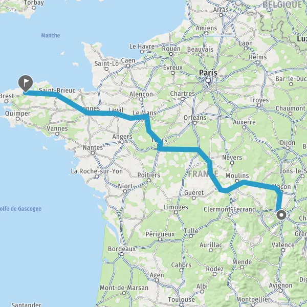 Prendre à droite et rejoindre A85 E604. Continuer sur 105 kilomètres