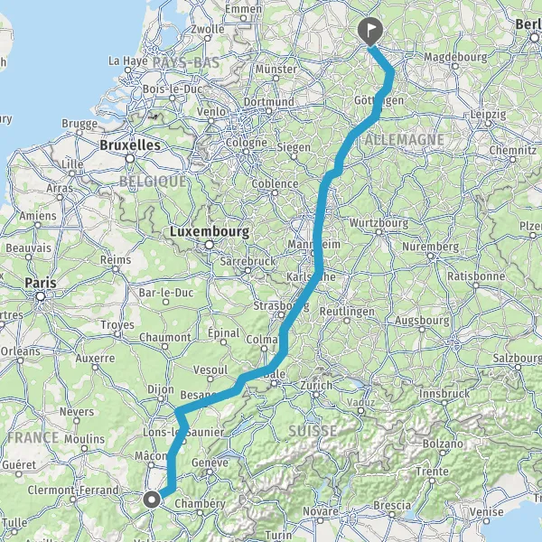 Prendre à droite et rejoindre A36 E60. Continuer sur 196 kilomètres