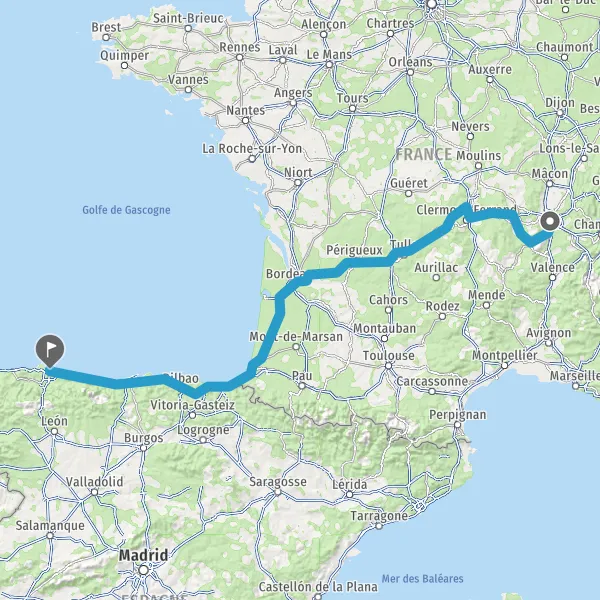 Prendre à droite et rejoindre A63. Continuer sur 205 kilomètres