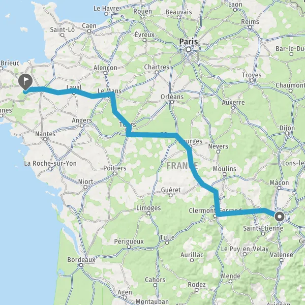 Prendre à droite et rejoindre A85 E604. Continuer sur 105 kilomètres