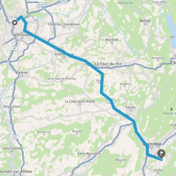Prendre à droite et rejoindre A48. Continuer sur 51 kilomètres