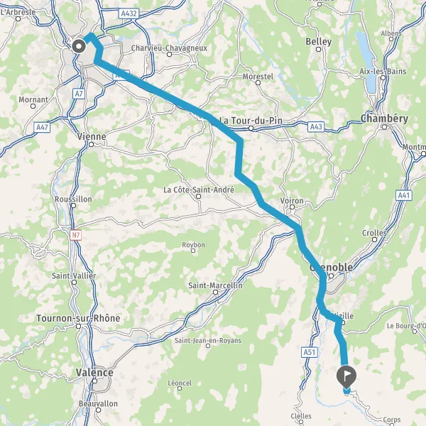 Prendre à droite et rejoindre A48. Continuer sur 51 kilomètres