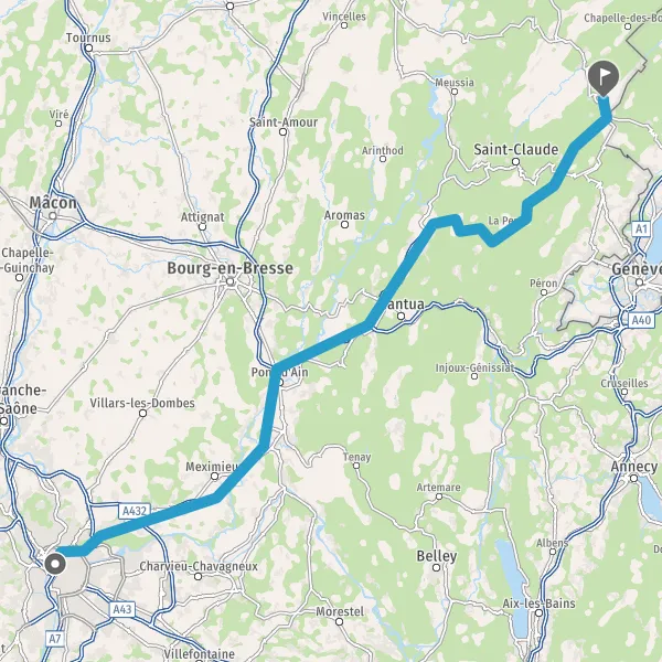 Prendre à droite et rejoindre A42. Continuer sur 4,4 kilomètres