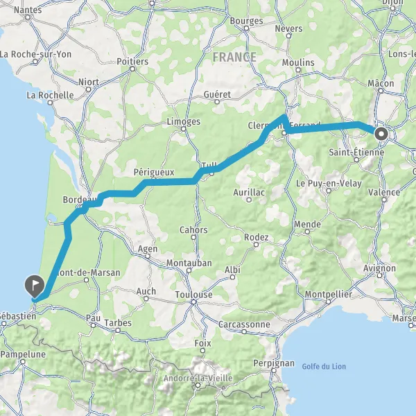 Prendre à droite et rejoindre A63. Continuer sur 154 kilomètres