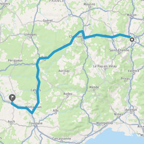 Prendre à droite et rejoindre A62 E72. Continuer sur 67 kilomètres