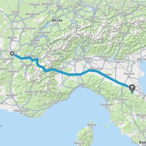 Prendre à droite et rejoindre E712 E70 (E70). Continuer sur 550 mètres