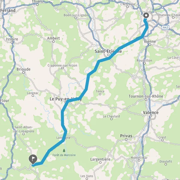 Continuer N88 (Quartier du Pont d'Allier) sur 43 kilomètres