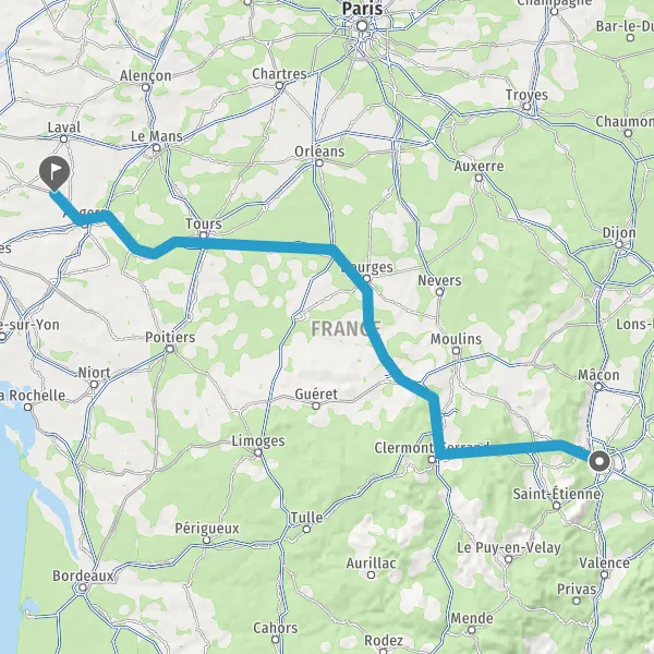Prendre à droite et rejoindre A85 E604. Continuer sur 205 kilomètres