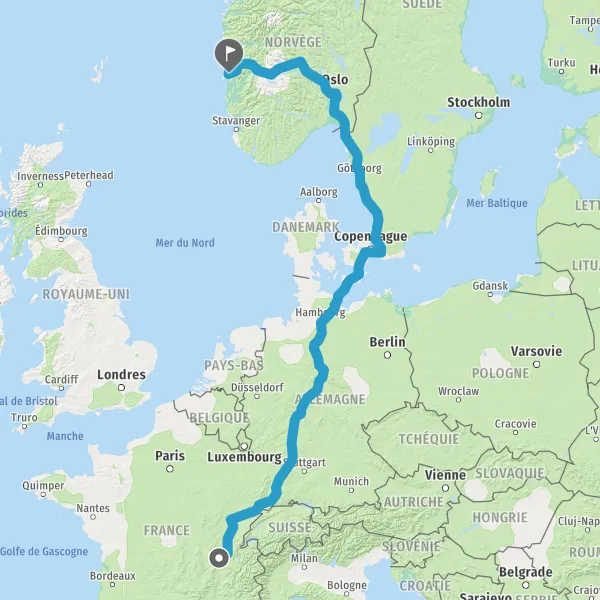 Au rond-point, prendre la 1ère sortie sur E16 (Evangervegen) et continuer sur 39 kilomètres