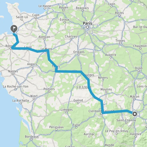 Prendre à droite et rejoindre A85 E604. Continuer sur 105 kilomètres
