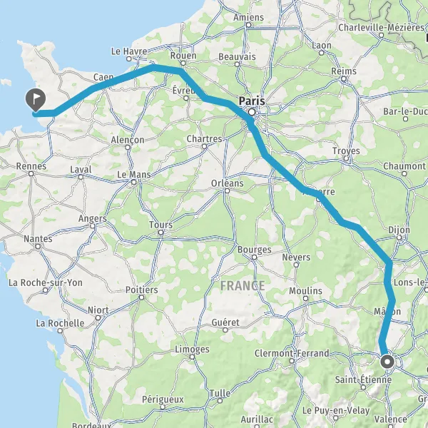 Prendre à droite et rejoindre A84 E401. Continuer sur 72 kilomètres