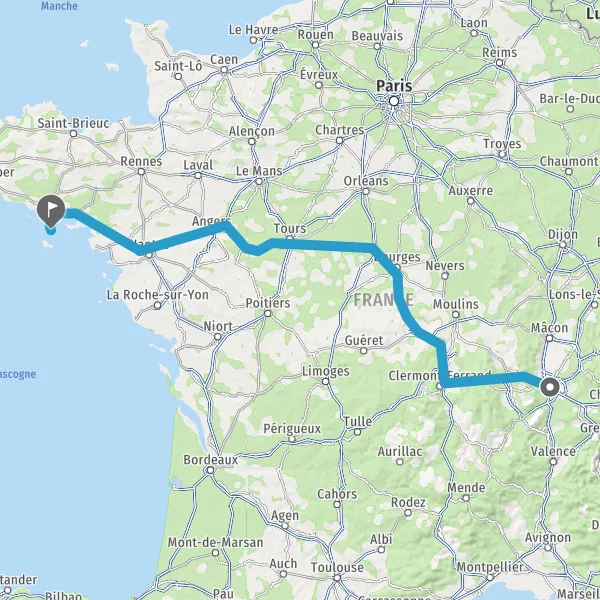 Prendre à droite et rejoindre A85 E604. Continuer sur 205 kilomètres