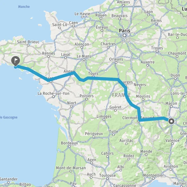 Prendre à droite et rejoindre A85 E604. Continuer sur 205 kilomètres