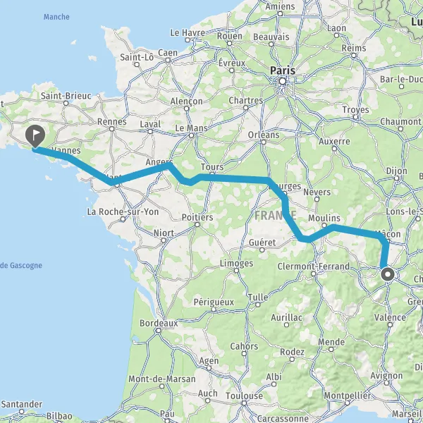 Prendre à droite et rejoindre A85 E604. Continuer sur 205 kilomètres