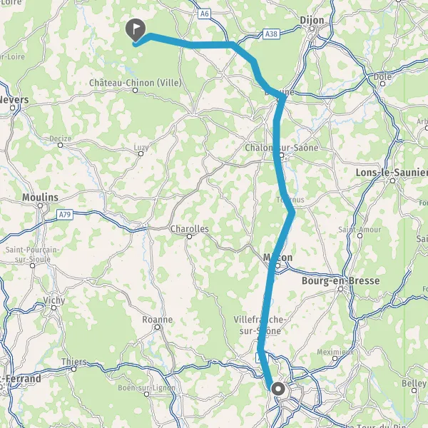 Continuer et rejoindre M6 (Autoroute du Soleil). Continuer sur 146 kilomètres