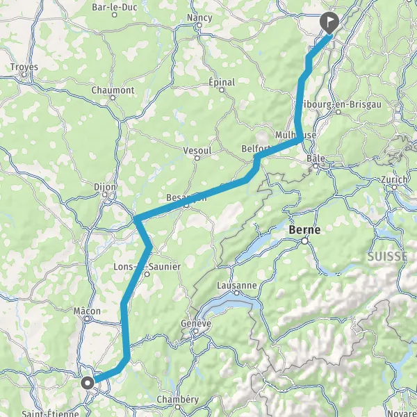 Prendre à droite et rejoindre A36. Continuer sur 45 kilomètres