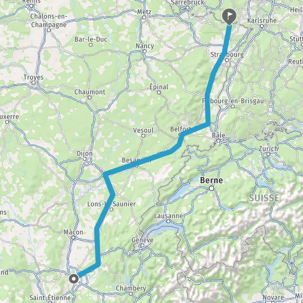 Prendre à droite et rejoindre A36 E60. Continuer sur 185 kilomètres