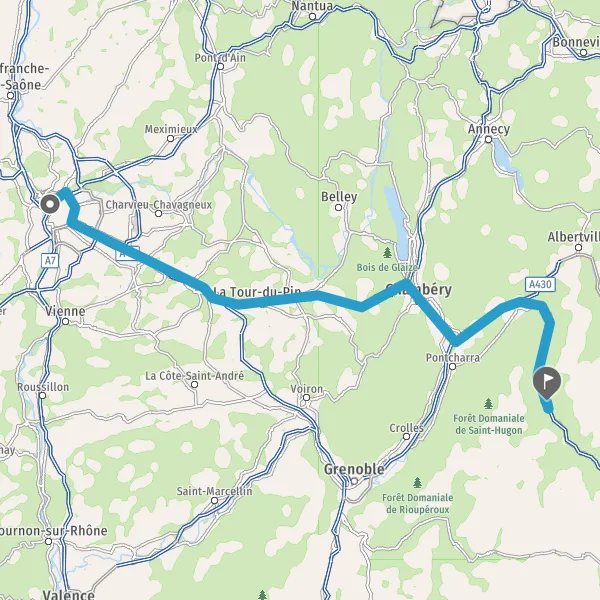Prendre à droite et rejoindre A43 E70. Continuer sur 32 kilomètres