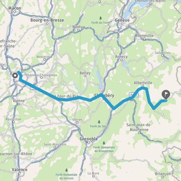 Prendre à droite et rejoindre A43. Continuer sur 19 kilomètres