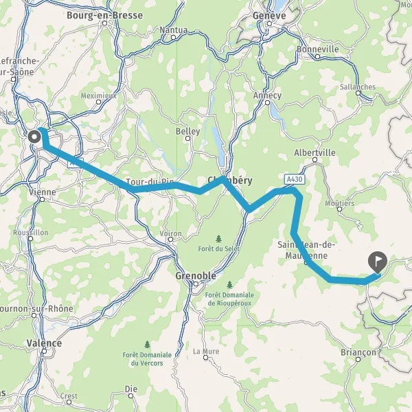 Prendre à droite et rejoindre A43 E70. Continuer sur 65 kilomètres
