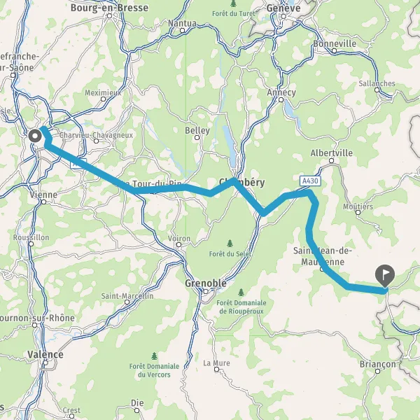 Prendre à droite et rejoindre A43 E70. Continuer sur 65 kilomètres