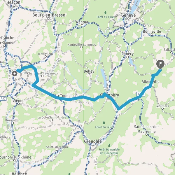 Prendre à droite et rejoindre A43. Continuer sur 19 kilomètres