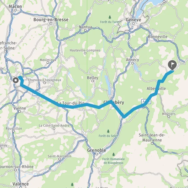 Prendre à droite et rejoindre A43 E70. Continuer sur 19 kilomètres