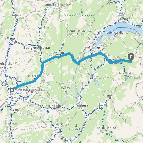 Autoroute Blanche-Tunnel de Chamoise Autoroute Blanche-Tunnel de Saint-Germain Autoroute Blanche-Tunnel de Châtillon Autoroute Blanche-Tunnel du Vuache Payer 18,90 € (Péage Viry) 59 km