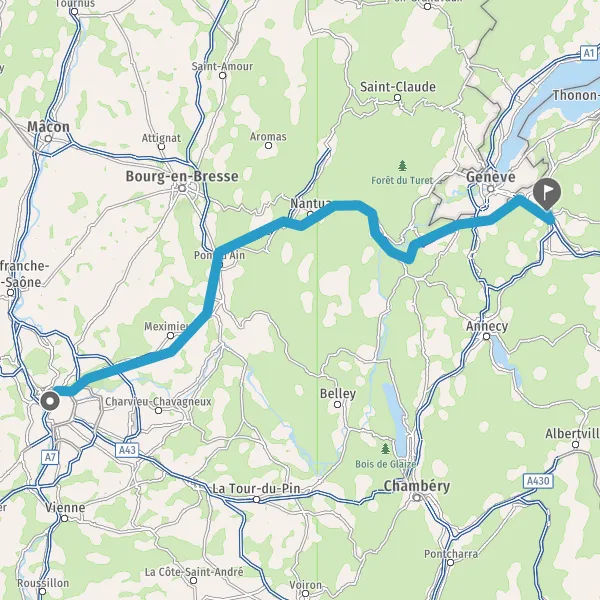 Prendre à droite et rejoindre A42. Continuer sur 4,4 kilomètres