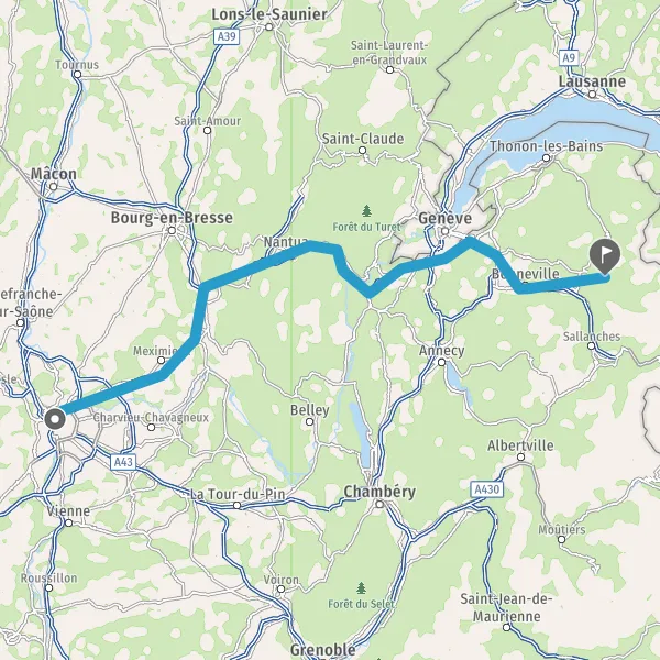 Autoroute Blanche-Tunnel de Chamoise Autoroute Blanche-Tunnel de Saint-Germain Autoroute Blanche-Tunnel de Châtillon Autoroute Blanche-Tunnel du Vuache Payer 18,90 € (Péage Viry) 59 km