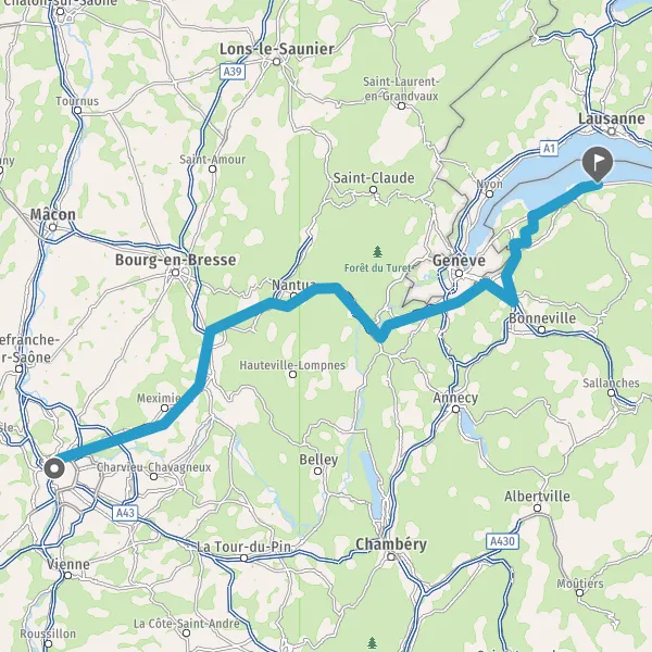 Autoroute Blanche-Tunnel de Chamoise Autoroute Blanche-Tunnel de Saint-Germain Autoroute Blanche-Tunnel de Châtillon Autoroute Blanche-Tunnel du Vuache Payer 18,90 € (Péage Viry) 59 km