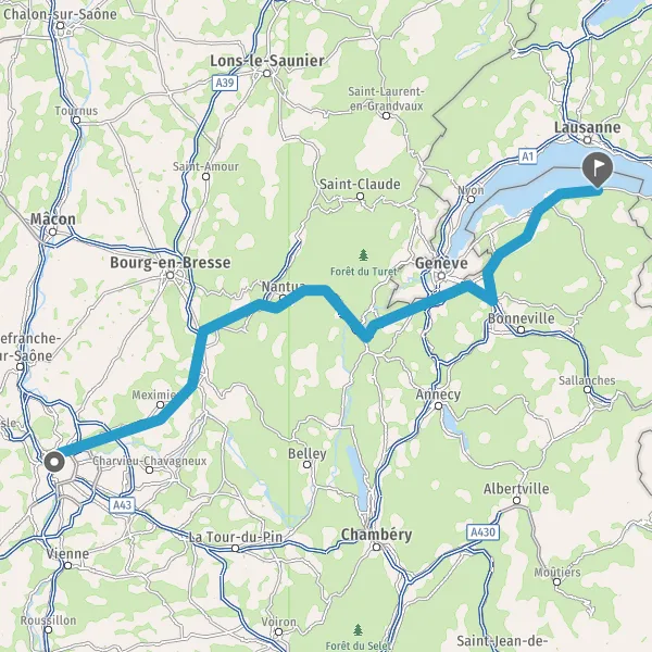 Autoroute Blanche-Tunnel de Chamoise Autoroute Blanche-Tunnel de Saint-Germain Autoroute Blanche-Tunnel de Châtillon Autoroute Blanche-Tunnel du Vuache Payer 18,90 € (Péage Viry) 59 km