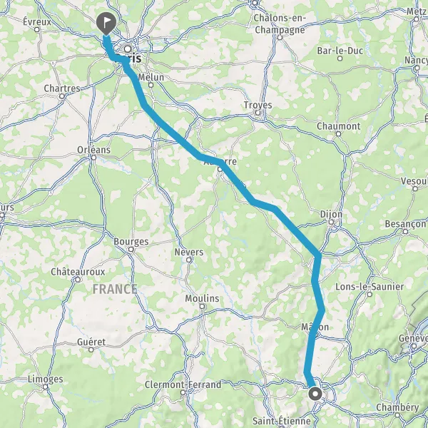 Prendre à droite et rejoindre A6. Continuer sur 294 kilomètres
