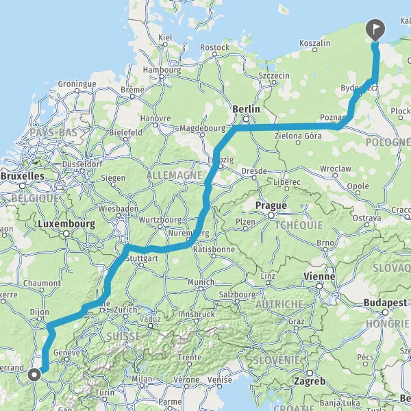Prendre à droite et rejoindre A36 E60. Continuer sur 196 kilomètres