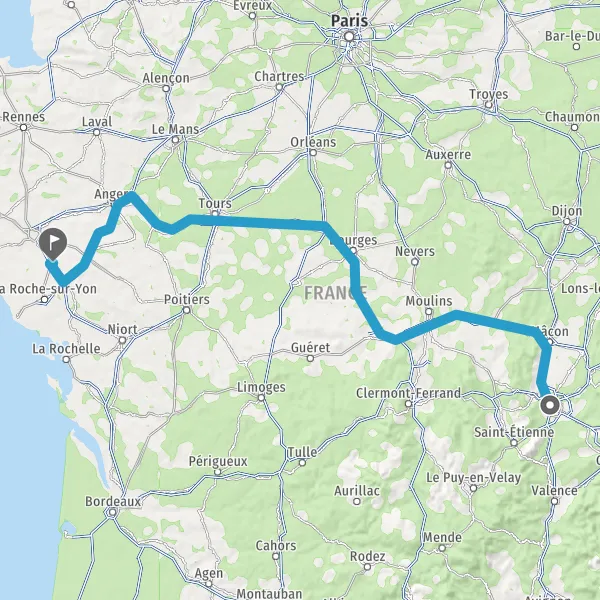 Prendre à droite et rejoindre A85 E604. Continuer sur 205 kilomètres