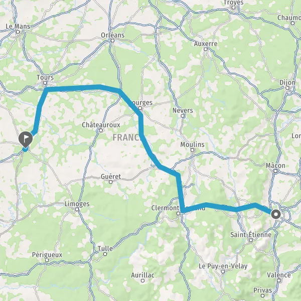 Prendre à droite et rejoindre A89 A71 E11 E70. Continuer sur 212 kilomètres