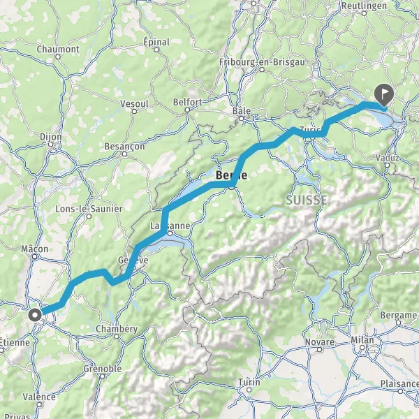 Prendre à droite et rejoindre A40 E62 E21. Continuer sur 77 kilomètres